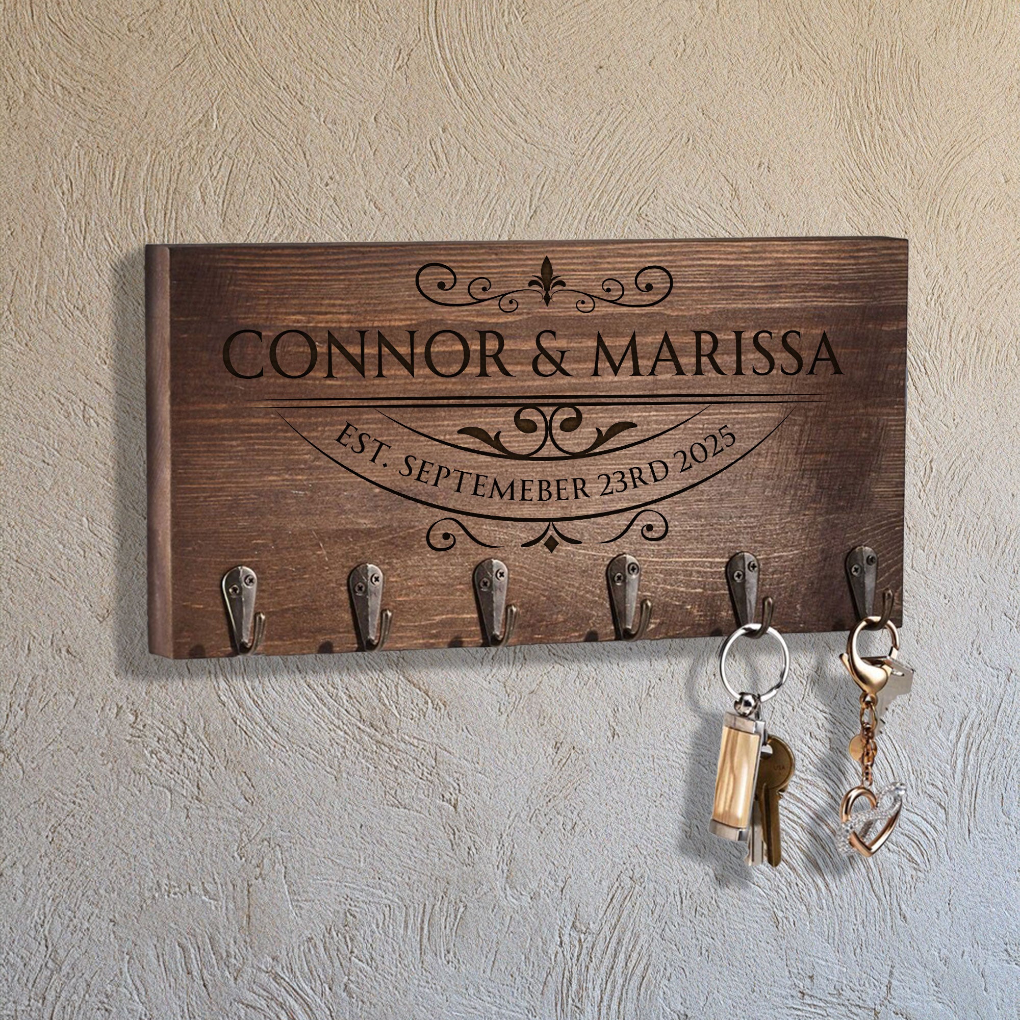 Ideal for new homeowners, families, or anyone who appreciates thoughtful home accents, this key hanger makes a great gift for housewarmings, weddings, anniversaries, or holidays. Whether it’s placed in a cozy hallway or near the front door, it adds warmth, character, and a sense of personalization to any space. It’s not just a key holder—it’s a stylish and practical keepsake that welcomes you home every day.